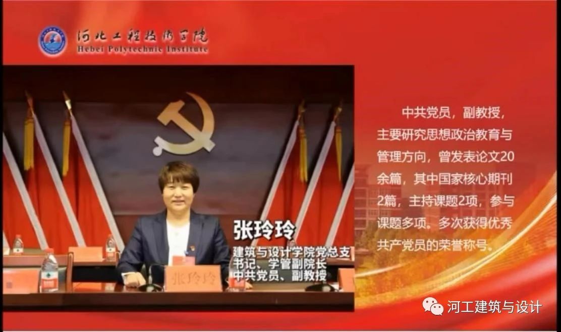 首先让我们一起跟随张院长来认识一下典礼大会参与人员,他们是建筑与设计学院院长:武勇;建筑与设计学院党总支书记兼学管副院长:张玲玲;建筑与设计学院教学副院长谷雨;办公室主任:王海波;学管办主任:刘腾;团总支书记:王亚楠。