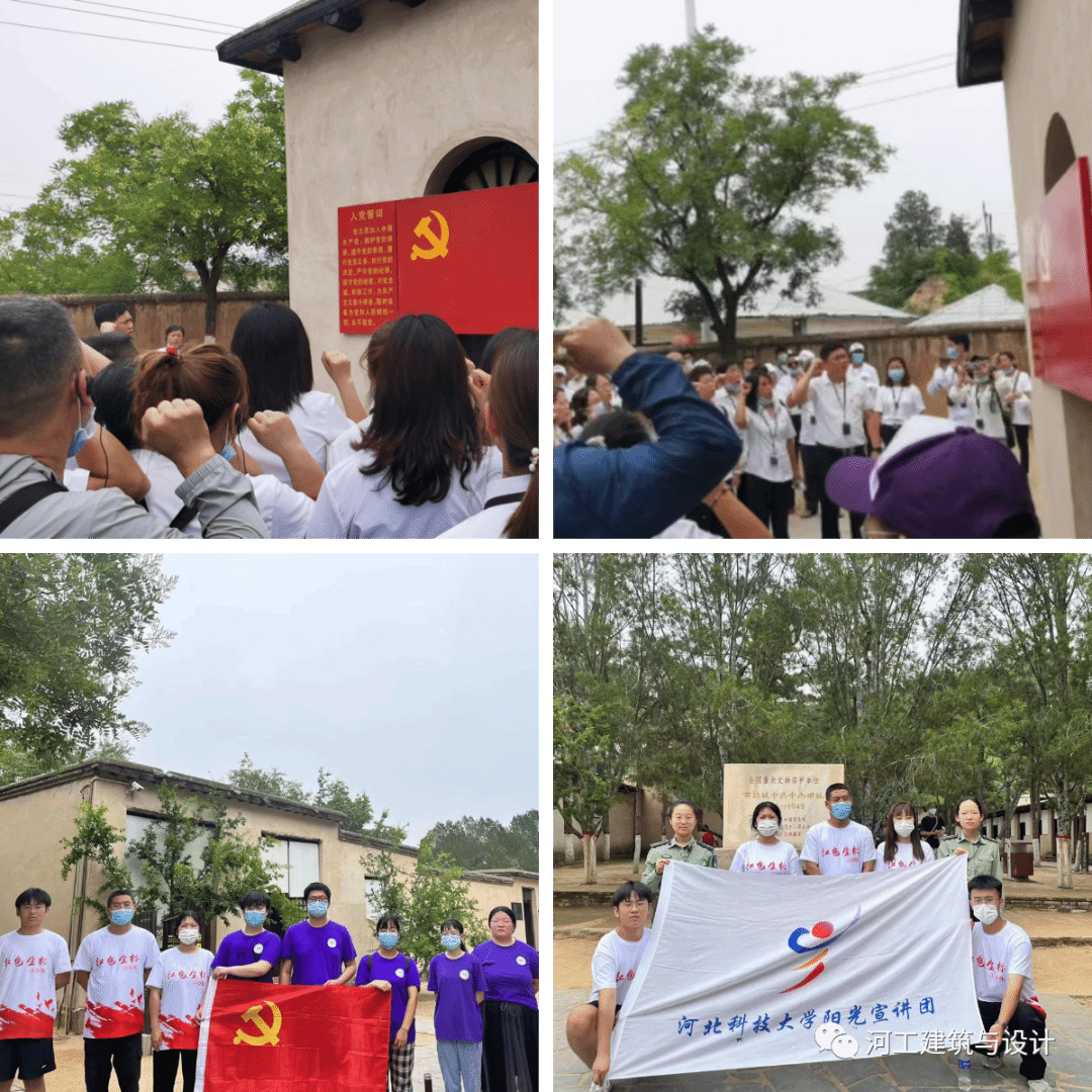 建筑与设计学院红色坐标小队提前搜集相关资料实地参观走访西柏坡中共中央旧址、中国共产党七届二中全会旧址、革命先辈旧居以及狼牙山红色革命等进行参观并与工作人员交流等践 学活动,开展“云直播”。用青年人更加接受的方式宣传红色文化,诠释爱国主义。