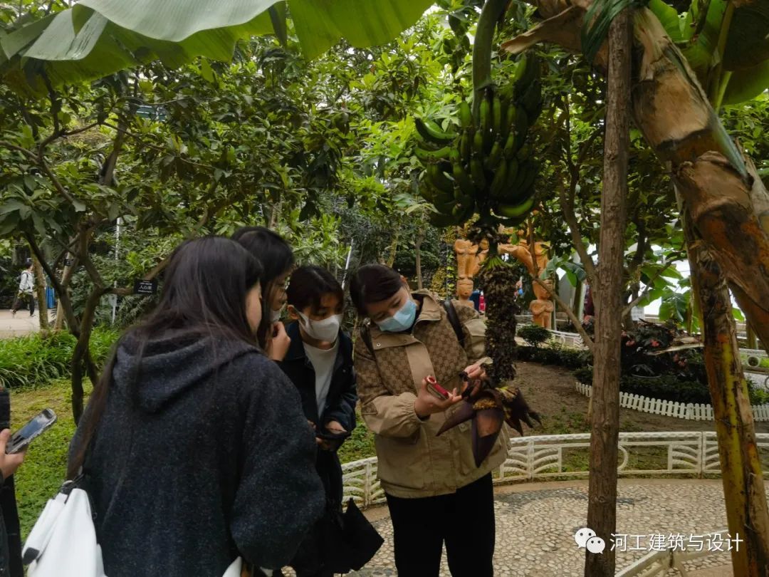同学们结伴游览热带植物区,感受与北方截然相反的植物景观,并进行初步识别。