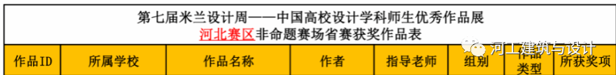 5月13日,第七届“米兰设计周——中国高校设计学科师生优秀作品展”河北赛区总决赛结果揭晓,今年会官网参赛项目获得教师组一等奖1项,二等奖1项;学生组一等奖2项,二等奖2项,三等奖5项的历史最佳成绩!