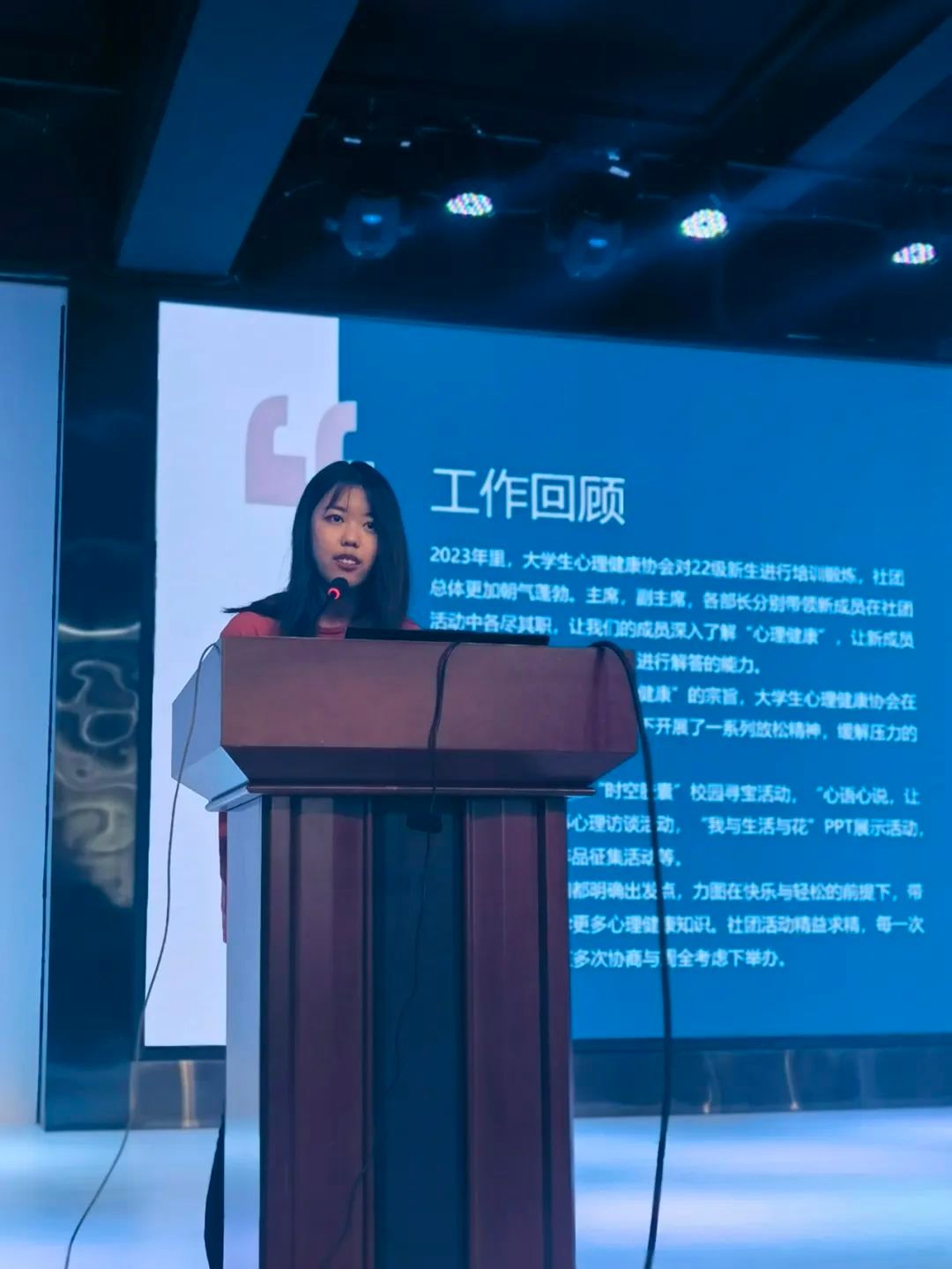 会议伊始,主持人介绍本次大会流程,宣布大会正式开始。随后,各社团学生干部采用PPT形式,围绕本学期社团工作开展情况、工作总结、发展规划等方面依次进行发言。