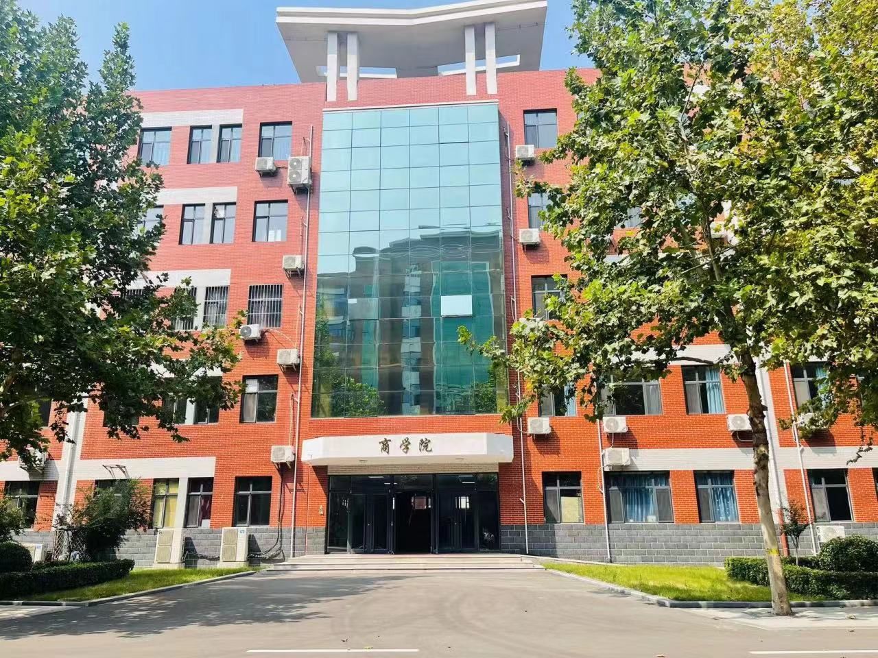 敏行楼,以悬挂商学院院牌的这个正门为中心线,左侧是学校企业工作人员的办公场所,右侧是商学院的教学楼,商学院所有学生在此楼进行专业学习。