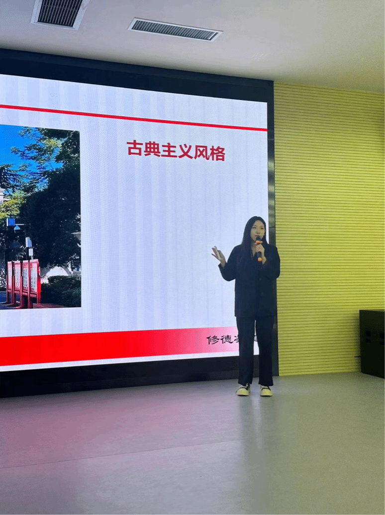 王彤匀老师从建筑元素,重点介绍了“五大会址”的前世今生,从建筑的设计理念,实用视角,展馆的场景布置等方面为观众呈现了建筑中的历史。还通过介绍教职员办公室,向同学们介绍了古典主义风格:三段式划分、对称布局、巴洛克花雕。中共五大作为幼年时的中国共产党探索中国革命艰难历程的重要环节,为党在思想理论、政治路线、党的建设等方面做出了重要贡献。红色建筑是绵延不绝的记忆,更是一种历久弥新的精神它是一笔传之久远的宝贵财富,更是凝聚人心、激励向上的澎湃动力它们的深处蕴藏着浓浓的红色基因和精神密码。