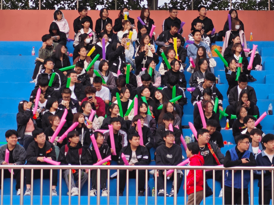 场边看台上,热情的观众们呐喊声片片,加油的掌声阵阵传出,为我们运动员们加油助威,相信运动员们一定能感受到他们的热情,在赛场上超越自我。
