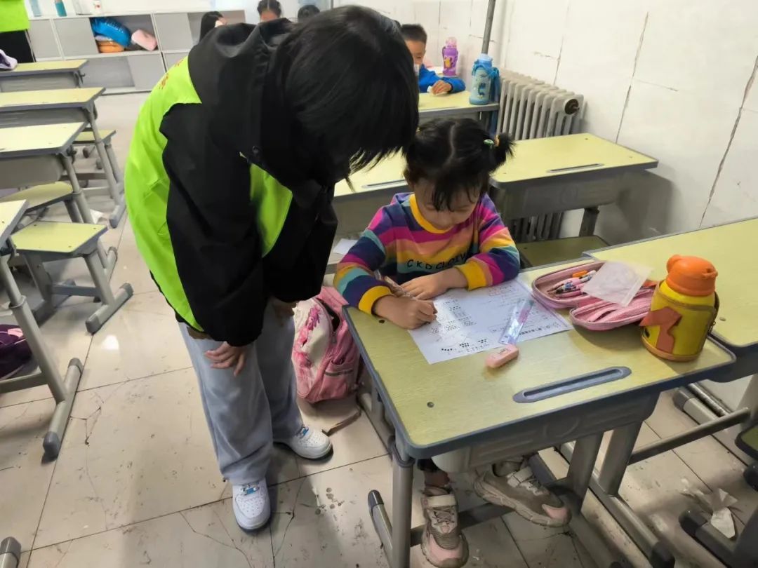 这次活动将志愿者们分成三组,分别到三个班级进行活动,以老师的身份,维持班级秩序,辅导孩子们的作业,深入小学课堂,与孩子们一同学习。