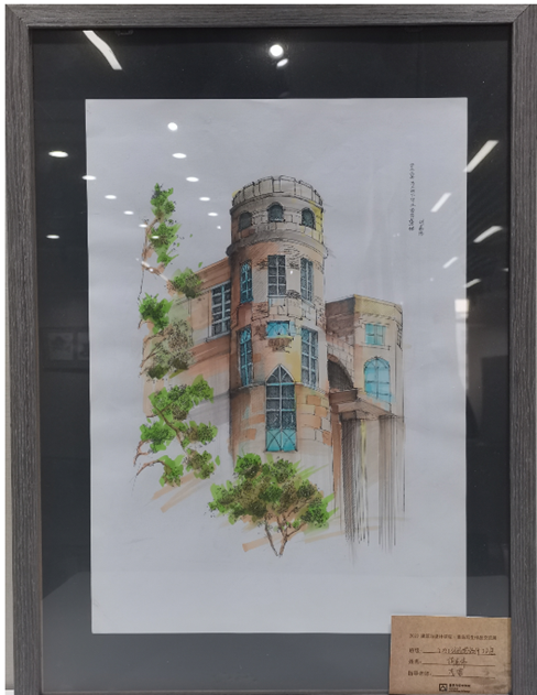 学生们深切的感受着青岛市市南区的每一条街道的古建筑,穿梭其中品味其历史的味道,造型的特点,色彩的魅力。在专业老师的悉心指导下,力求将理论应用于实践,指导实践。用点线面等手段体现历史的味道、独特的建筑造型和那美丽的色彩。同时,在教师的悉心指导和点评下,帮助学生探索建筑写生和采风的要点,迅速掌握表现建筑特色的技巧和表现手法,并取得不错的效果。