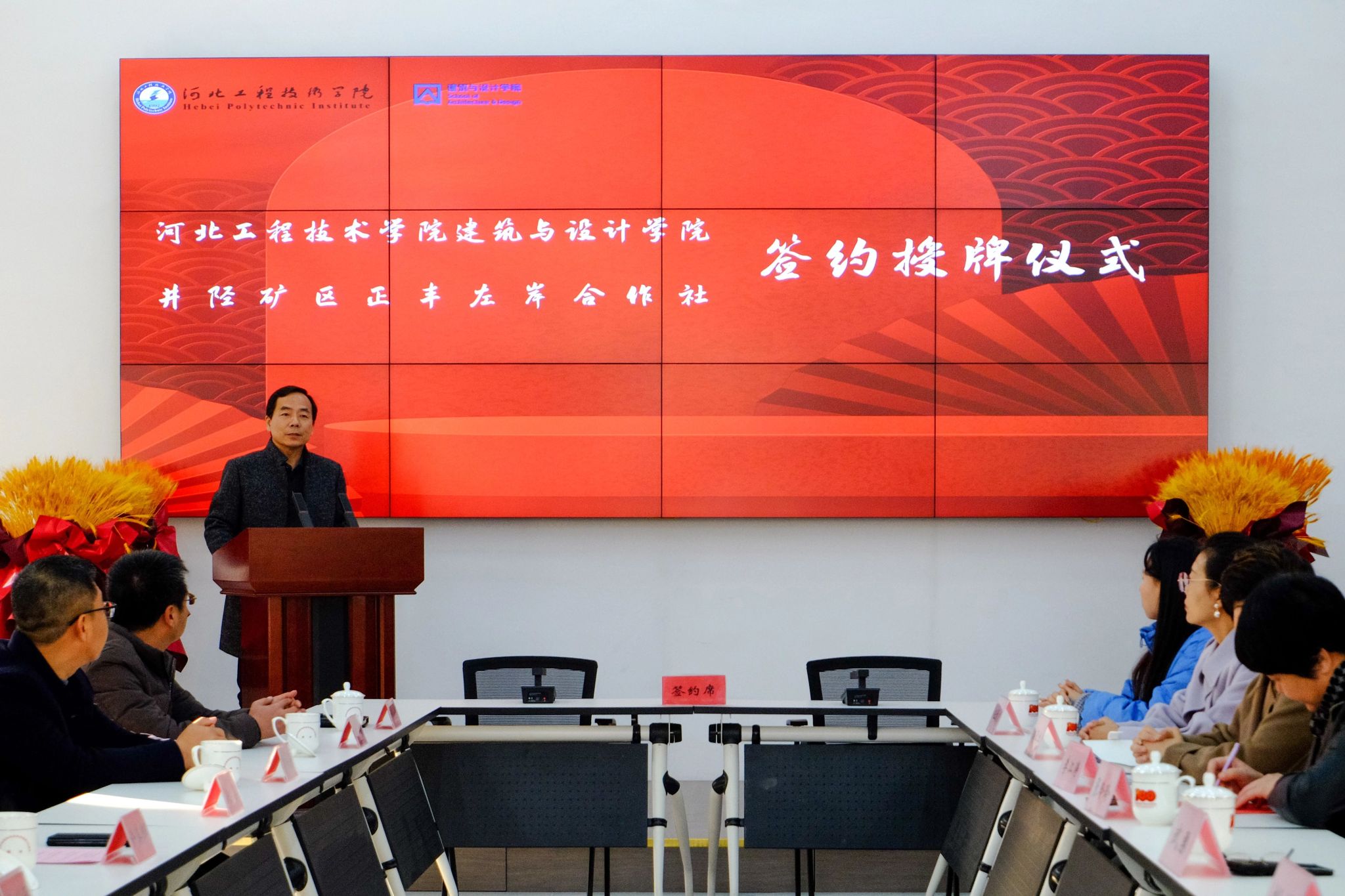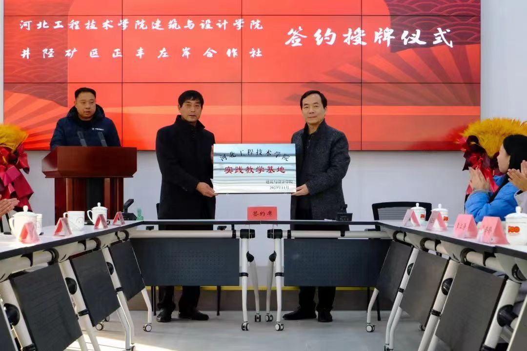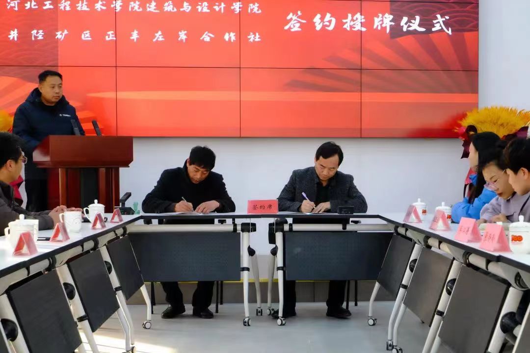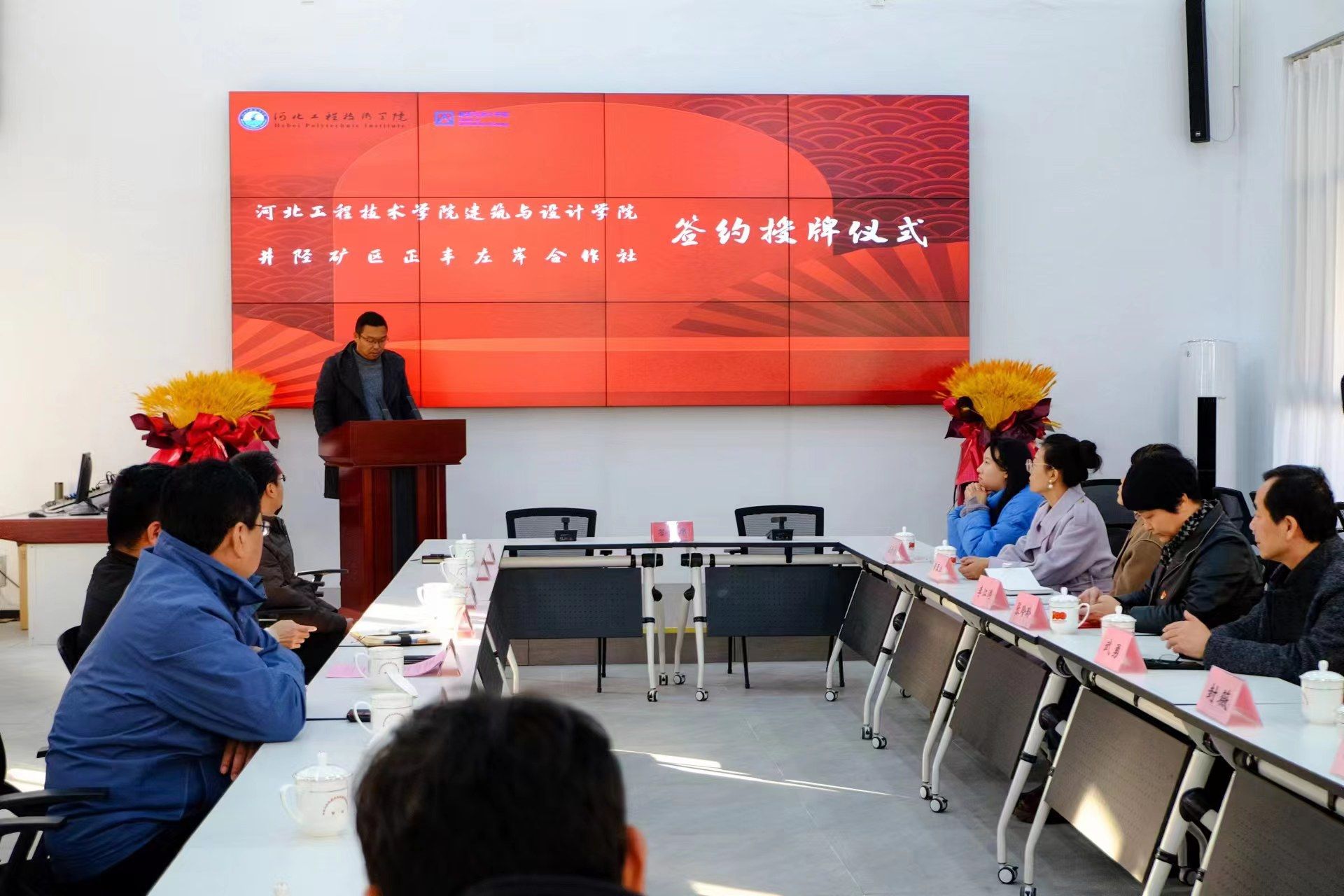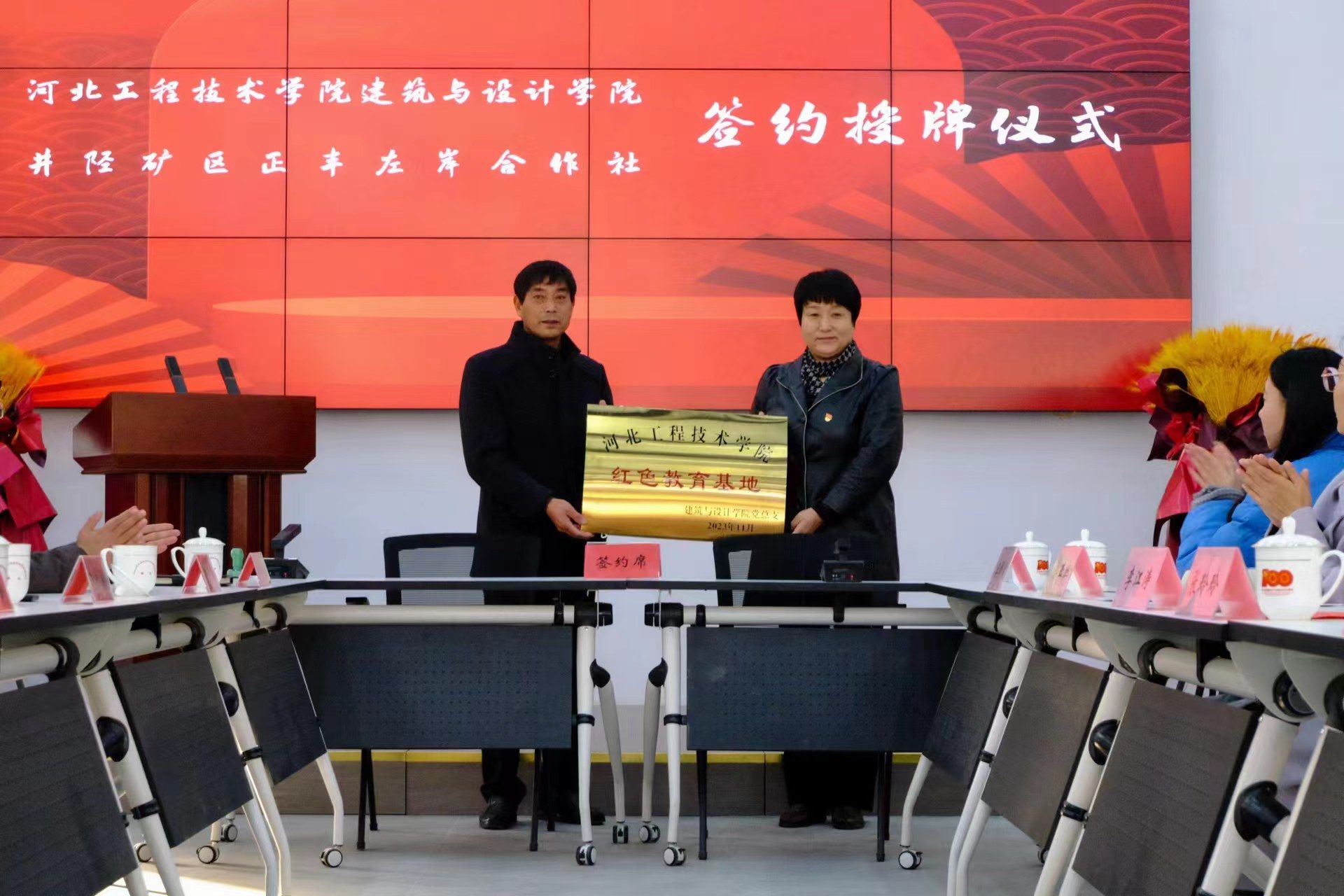 为进一步提升今年会官网各专业学生实践能力,传承和弘扬本地优秀红色文化与乡土文化,充分利用好当地资源优势,不断深化实践基地的特色育人理念,展现红色历史,传承红色基因,增强民族自豪感。12月5日,建筑与设计学院院长武勇、党总支书记副院长张玲玲、副院长李江涛携环境设计系系主任及骨干教师与井陉矿区正丰左岸合作社进行实践基地、红色教育基地签约仪式。