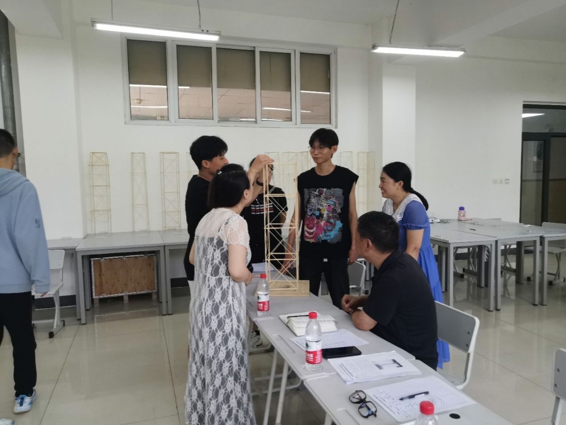 本次竞赛共吸引了全校24支队伍报名、80余名师生参与。经过模型质量称量、模型尺寸检测、学生阐述、评委提问、模型加载测试等多个环节的激烈角逐,最终评审出一等奖2项、二等奖5项、三等奖9项。