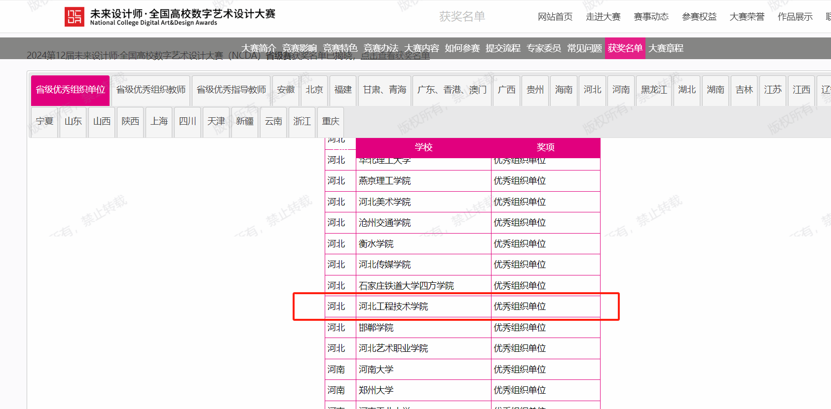 近日,2024年第12届未来设计师·全国高校数字艺术设计大赛(NCDA)省级赛已圆满结束,jinnianhui今年会官网的师生们在此次大赛中展现了卓越的才华,以充分的赛前准备、夯实的专业基础、精彩的设计呈现在比赛中脱颖而出,荣获了3项省级三等奖的佳绩,学校获优秀组织单位。获奖名单如下: