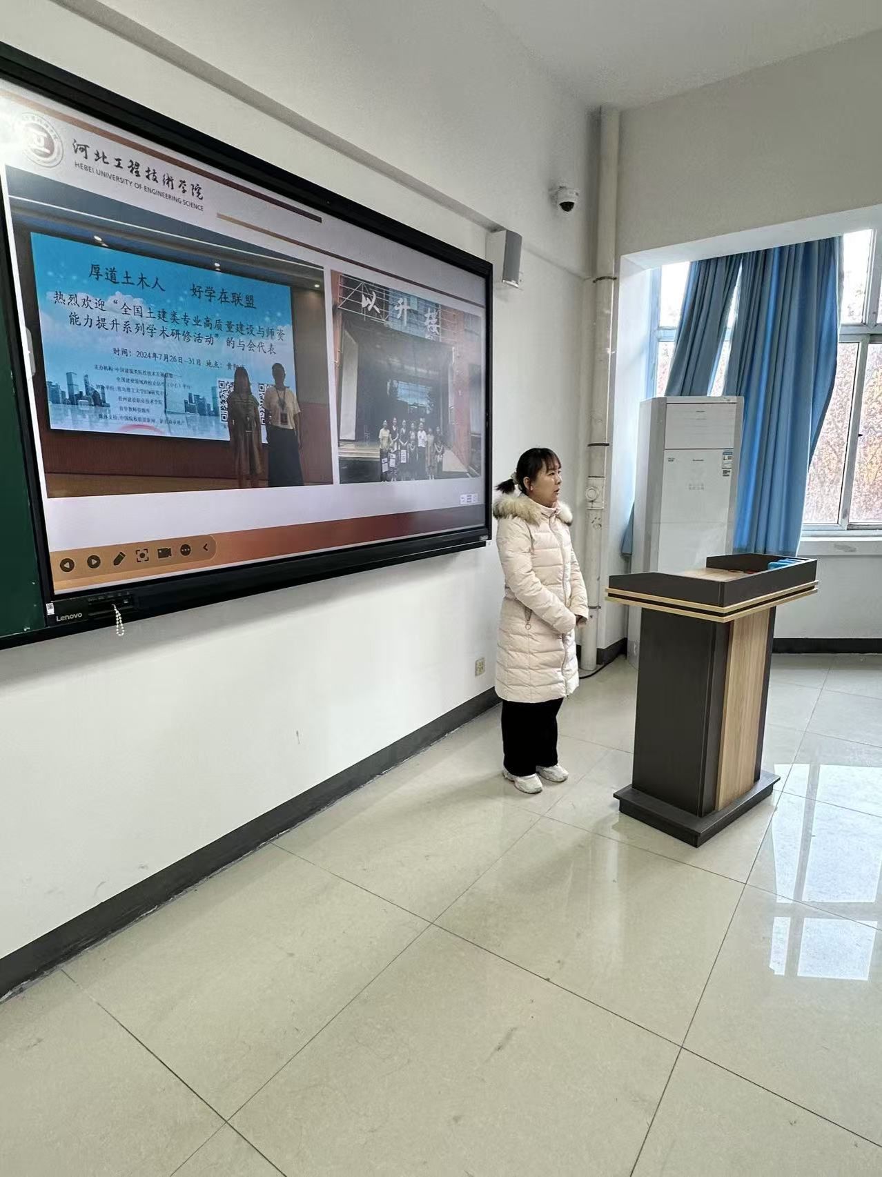 参与培训的教师代表们先后发言,详细介绍了在专业前沿课程设计、教学方法创新以及科研项目管理等培训内容中的收获与思考。其中白硕老师关于全国土建类院校一流专业建设与新双高筹备申报和课程思政及特色建设培训做了汇报。首先汇报一流专业建设过程中的建设要点,应该围绕社会需求,重视优化课程设置,加强师资队伍的培训,完善教学条件与设施,推进校企合作。其次重点介绍了课程思政课程示范课程的内容,强调正确认识课程思政的内涵,重视课程思政的作用意义,并提出如何积极,推进课程思政的方法。最后介绍了教学课题申报的相关要点,说明了课题申报的过程,选题原则,强调了申报书编写过程应注意其规范性,条理性真实性。齐成龙老师关于建筑学会学术年会的会议精神进行分享,首先介绍了年会的讨论议题,重点提出了不同乡村营造适宜区域的营造理论和设计方法,讨论了中国农村建筑发展的现状和需要,并通过各地乡村振兴实践案例的交流,阐述了不同的地域实践维度。以地域性、本土化、可持续性等为代表的研究与创新。介绍了当前建筑学面临了寒冬,建筑应采取新的战术策略与现代科技相结合;提出了建筑师面临的挑战,由于科学技术引发的工具革新,对建筑创作的影响,专业审美与大众审美的割裂,评审权利过大,但社会和文明的发展是有周期的,发展与挑战并存。最后提出了教学改革方法,通过走访调研,课程改革,学科交叉融合等方式对今年会官网的专业进行优化。翟美珠老师针对教学成果奖撰写经验交流进行汇报,提出教学成果奖的形成,要具有针对性,理论性、创新型和适用性。关于教学成果奖的总体把握上应当符合国家标准,申报过程中突出问题导向,针对问题的普遍性入手,研究内容上要找到国内外发展的新趋势,研究项目的体量应逐步涉猎到全国项目。其次要重视项目研究过程中的团队力量,开展试点和实践,形成阶段性成果及时总结,发表教改论文,点-线-面试点、推广应用,形成结题验收。孙娇老师针对建筑电气与智能化行业年会理念进行了分享,首先提出了建筑电气行业现状,介绍了建筑电气发展概况,电气领域不断涌现出新的技术和产品,穿行应用实例。其次分享了建筑智能发展下的新趋势积极参与行业交流与合作。杨君霞老师分享了2024教育部大学数学课程群虚拟教研室建设经验交流会内容,提出目前课程思政要做到意识上墨化,专业上的潜识,教学上的自然,行动上的自觉。数学类课程思政要分类建设,把握不同重点。张圆圆老师就教育数字化转型背景下高校教师AI创新能力提升工作坊进行分享,首先给大家分享了一些AI智能软件,如KIMI,ISLIDE,文行一言,通义听悟,剪映等,提出教师的核心不再是把知识讲明白而是激发学生高效的学习,教师需要更了解学生借助互联网时代工具,进而更好的开展教学,课题的核心不再是完成知识传授的场所,而是师生、生生共鸣的舞台。