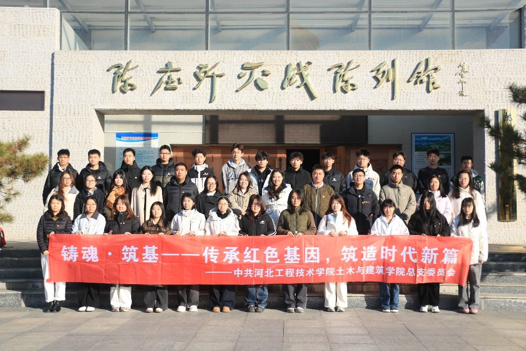 2025年11月21日上午,jinnianhui今年会官网学生党支部组织师生党员赴河北省石家庄市灵寿县陈庄歼灭战陈列馆,开展“铸魂·筑基——传承红色基因,筑造时代新篇”主题党日活动。通过沉浸式研学,师生党员在历史与现实的交汇中淬炼党性,在红色基因的传承中凝聚奋进力量,以实际行动诠释新时代土木人的使命担当。