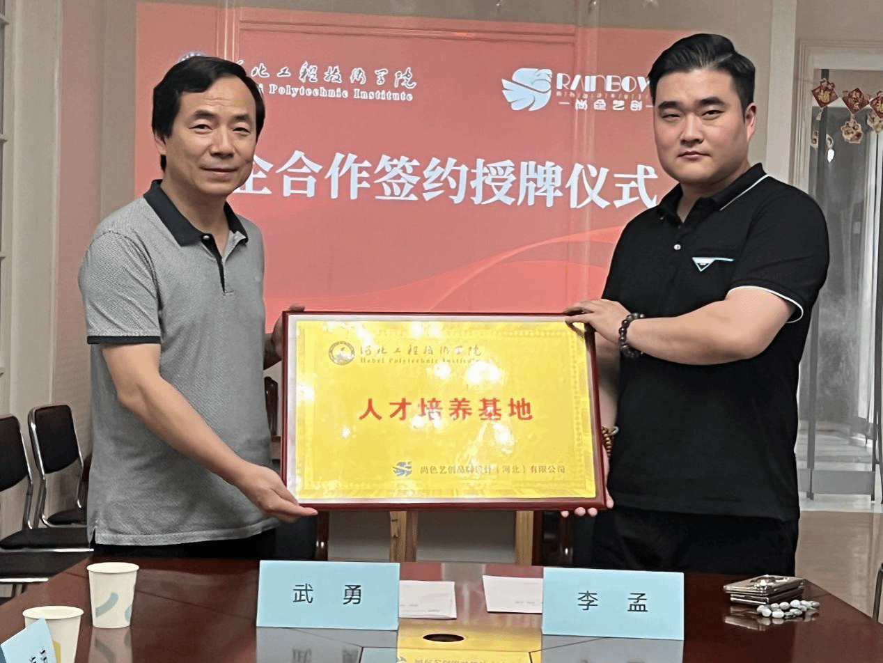 为进一步推进产教融合协同育人,深入探索产教融合的人才发展引育路径,2022年7月6日,武勇院长带队到尚色艺创品牌设计(河北)有限公司实地走访调研。参加走访调研的建筑与设计学院领导还有书记(学管副院长)张玲玲、教学副院长谷雨、办公室主任王海波、视觉传达设计系主任朱冰洁等。企业方的出席领导有尚色艺创品牌设计(河北)有限公司董事长李孟、高级合伙人聂丹丹、分公司负责人党明智,人资经理邹月芳、招聘经理张玮。