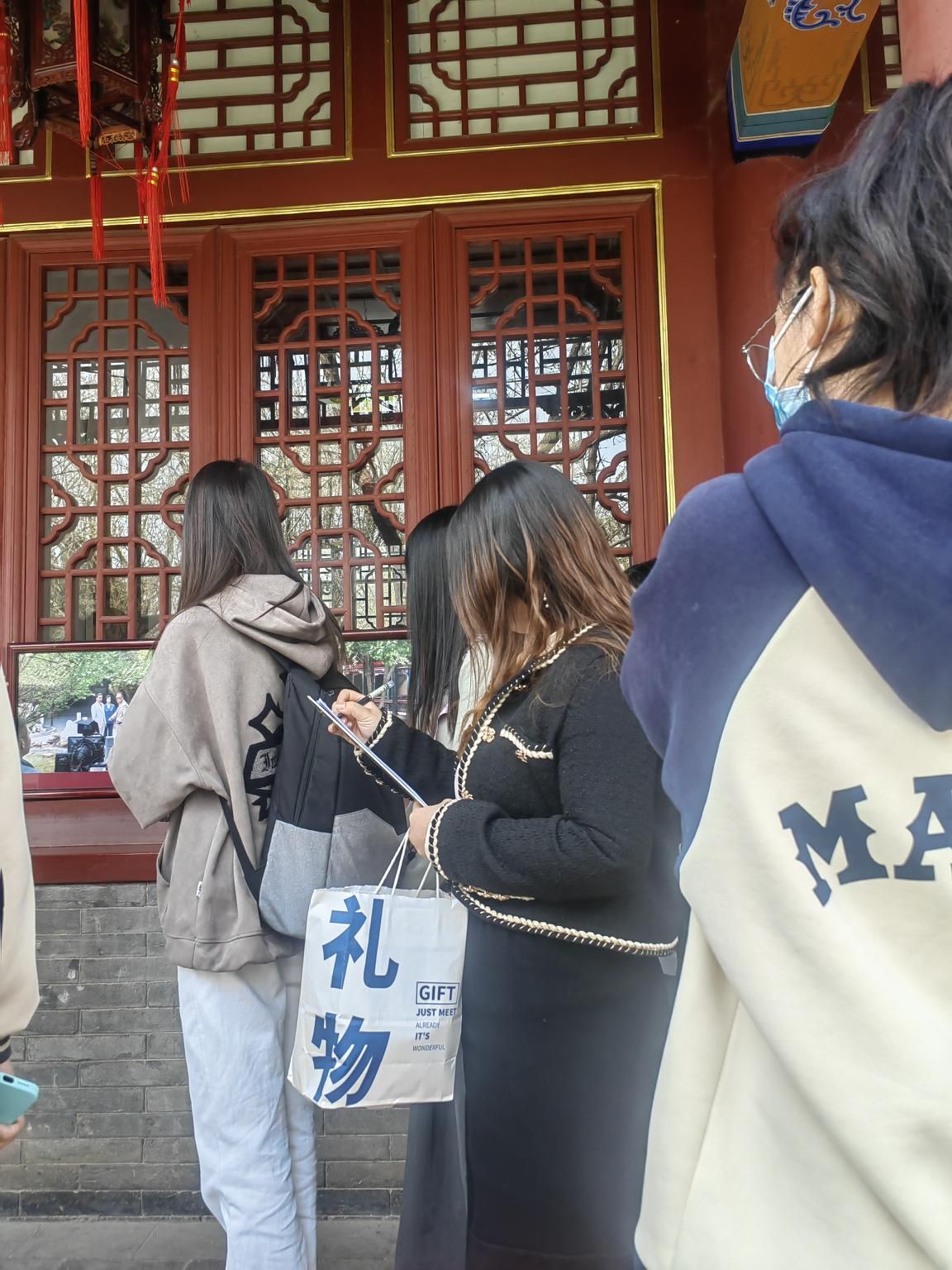 同学们在荣国府参观学习,并认真记录。