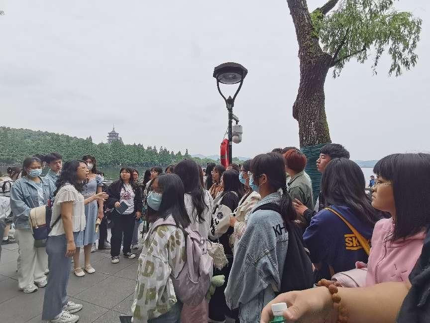 从苏州古典园林到新苏州博物馆,从嘉兴乌镇到杭州西湖,从西溪湿地到中国美术学院象山校区、浙江美术馆、良渚文化艺术中心,古典园林与现代建筑的碰撞融合,使同学们眼界大开,获益良多。两位老师分别为两个年级的学生讲解了建筑与周围环境的协调、传统园林与现代建筑的融合,阐释了传统造园手法的隔景、障景、透景、漏景、借景、框景等技法在古典园林中的真实体现。学生们在参观考察学习中,真正感知到了“虽由人作,宛自天开。一步一景,步移景异。”同时,通过中西方生态观念的发展比较,让学生了解中国传统园林景观智慧的伟大成就,从而建立民族文化自信。