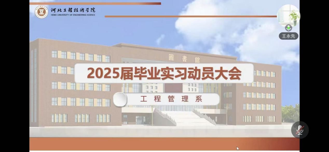 工程管理系于2024年12月29日晚线上召开了2025届毕业生毕业实习动员会,此次会议由工程管理系全体教师及2025届全体毕业生参加。大会旨在为同学们即将踏上的毕业实习之旅加油鼓劲,明确实习目标,指导实习规划,为同学们顺利过渡到职场生涯奠定坚实基础。