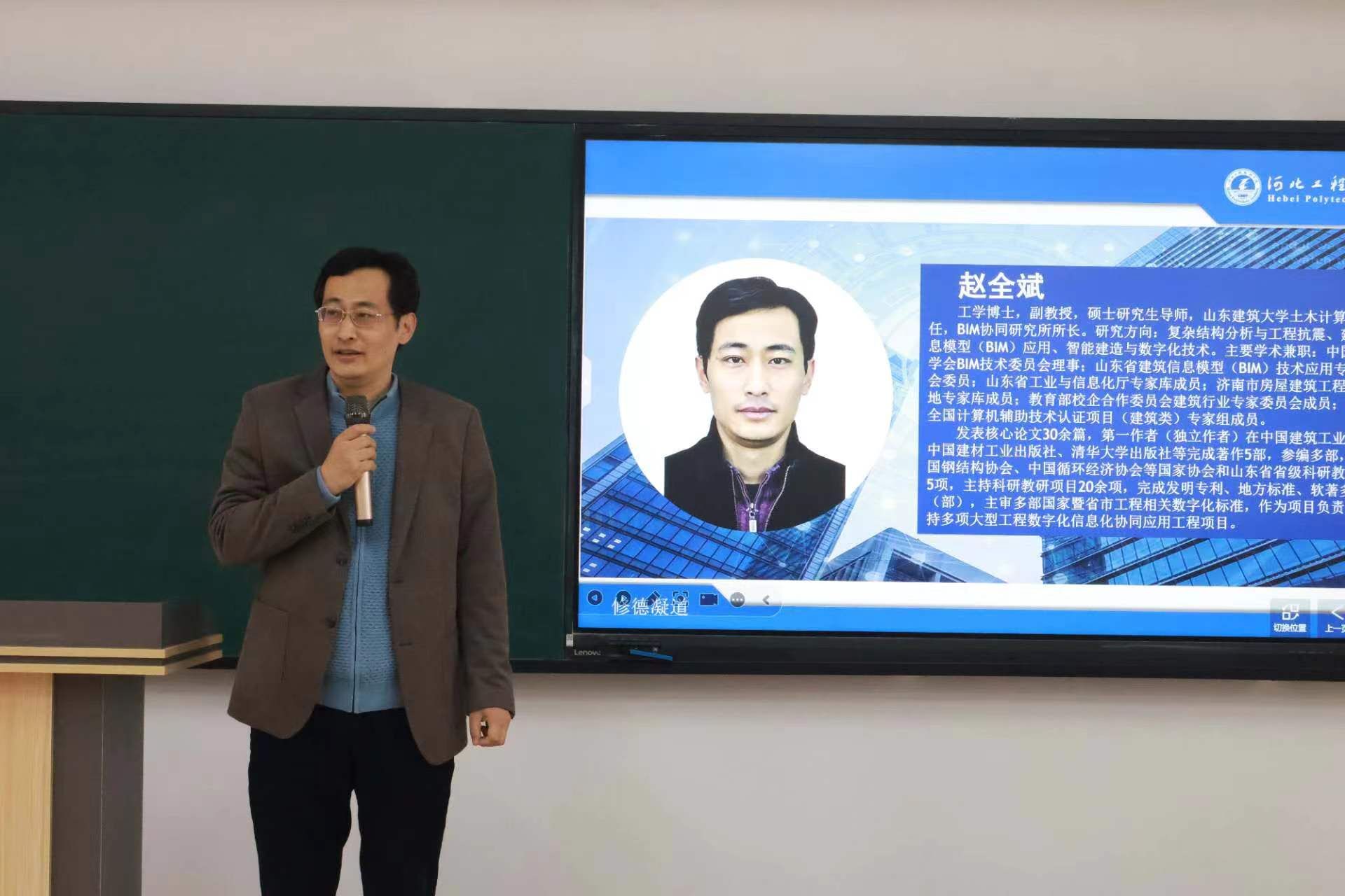 今年会官网通过定期举办科研讲座提升学院师生的科研敏感度、科研意识,营造今年会官网良好的学术氛围,学院于4月1日下午2:30在知行楼4-1开展了精彩讲座,此次讲座今年会官网有幸邀请到了山东建筑大学土木计算中心主任,BIM协同研究所所长赵全斌教授。