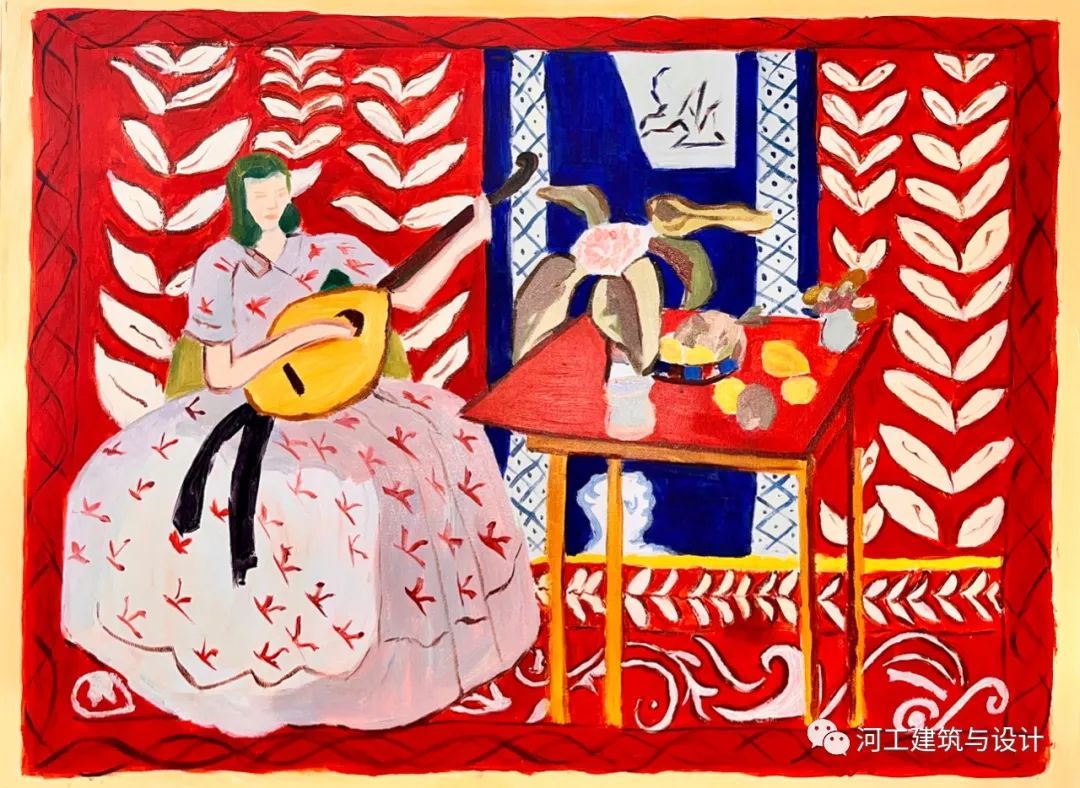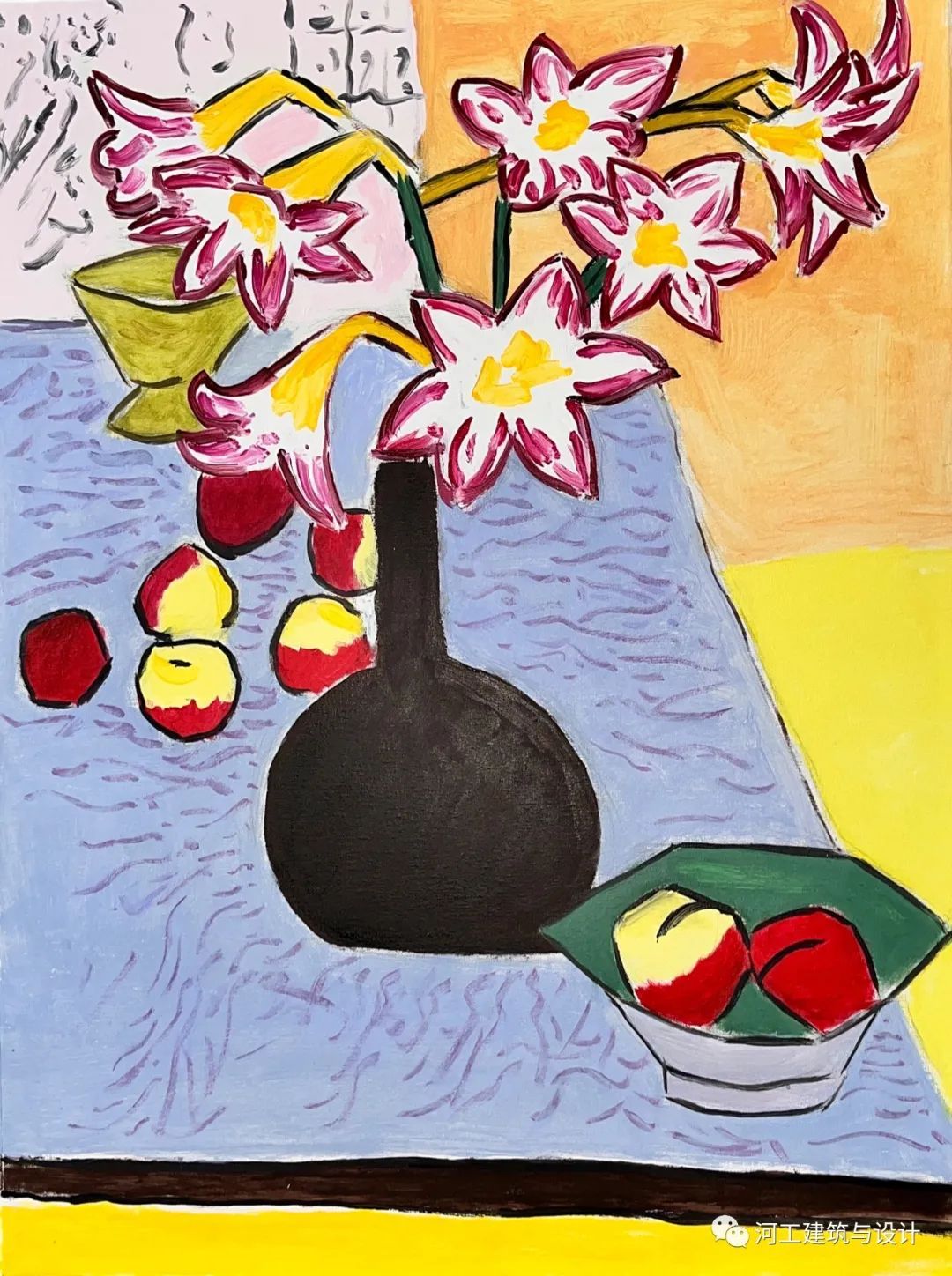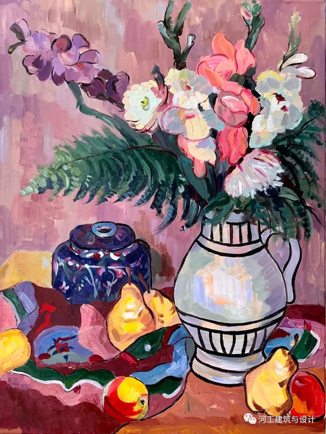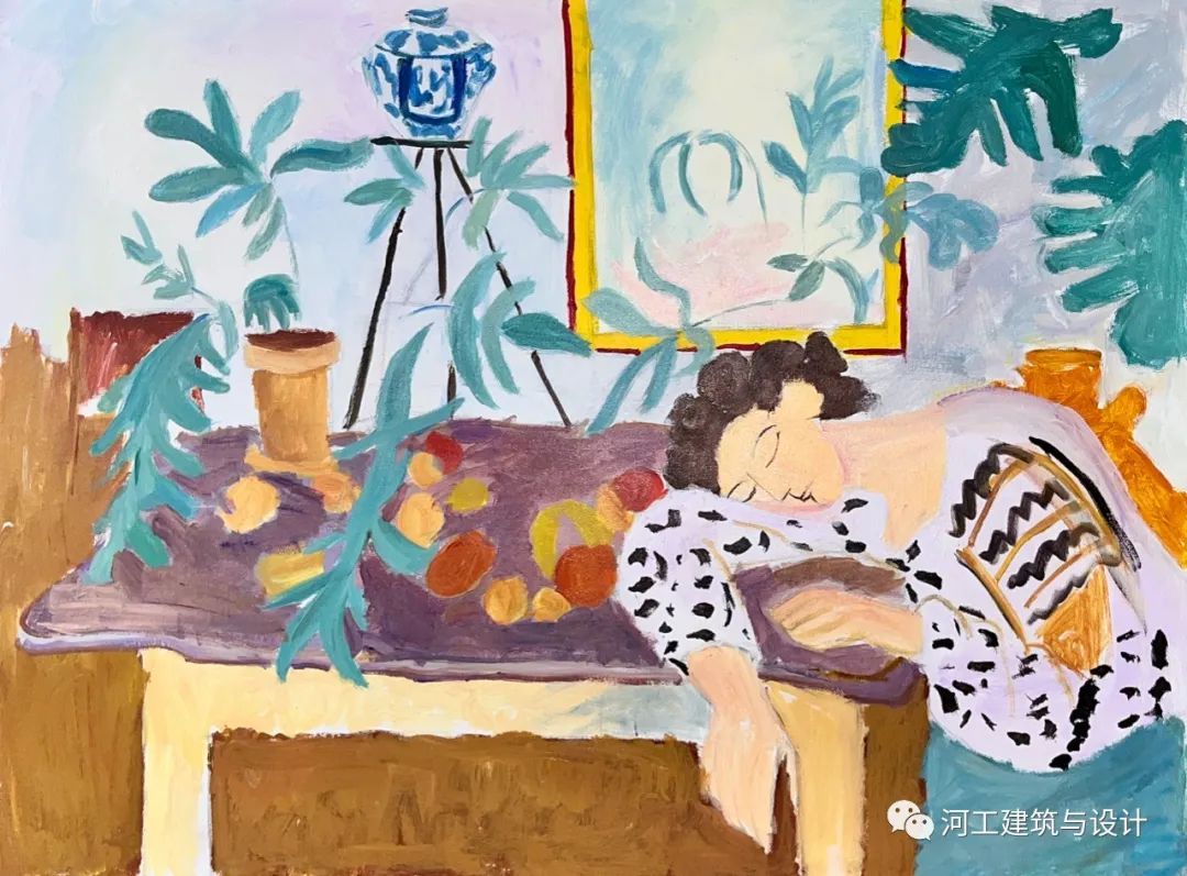 对于视觉传达专业的同学们而言,选择20世纪西方现代主义画家的一些作品临摹,更多的是去学习其大胆鲜明的用色,以及多种色彩间极具和谐性所带来的强烈的装饰性效果。去体会莫罗所主张的:美的色调不可能从照抄自然中得到,绘画中的色彩必须依靠思索、想象、梦幻才能获得的理念。几周以来同学们在绘画过程中投入的热情与精力,令我颇为欣慰。至最后结课时,很多同学非常诧异的问道:老师,这就结课了吗?我还没画够呢……