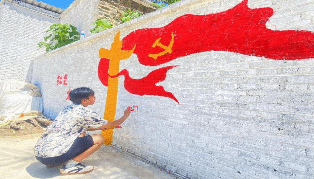 也在活动中领会了中国人民抗日军政大学(旧址位于邢台市信都区浆水镇)校训“团结、紧张、严肃、活泼”的精神含义。通过小队的努力,岳沟村的此面墙壁已经焕然一新,成为了一个令人赞叹的艺术景观。