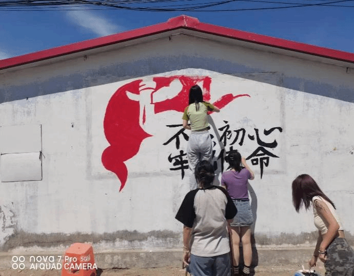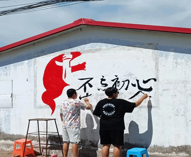 我们的团队在选择题材、设计构思和绘画技巧上都经过了精心的考量和研究,力求将红色墙绘打造成一个具有深意和感染力的作品。通过我们的努力,七街村的墙壁已经焕然一新,该墙绘成为了七街村一道靓丽的风景线。