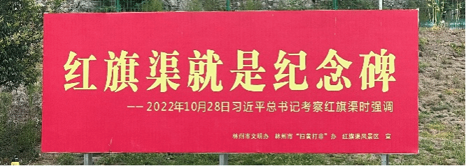 新时代,红旗渠这面精神旗帜,我们需大力弘扬红旗渠精神,对党忠诚、无私奉献,以伟大自我革命引领伟大社会革命,为党和国家事业发展提供坚强政治保证,将激励亿万中华儿女在实现中华民族伟大复兴中国梦的征途上阔步前行、一往无前!