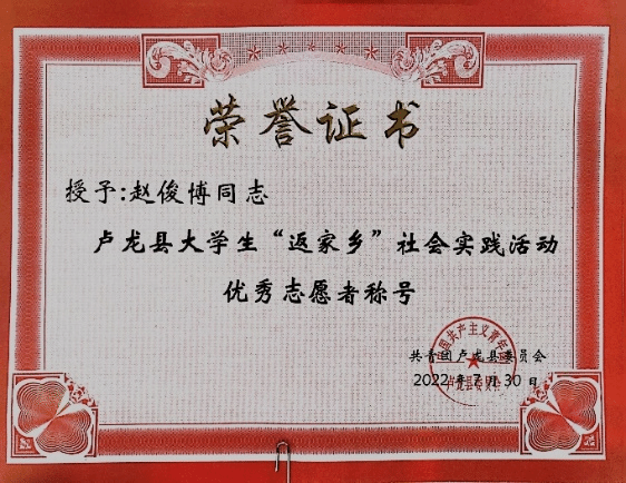 “纸上得来终觉浅,绝知此事要躬行。” 在注重素质教育的今天,社会实践活动是高校培养德、智、体、美、劳全面发展的优秀人才的重要途径,是学校教育向课堂外的一种延伸,也是推进素质教育进程的重要手段。同时,实践也是我们学习知识、锻炼才干的有效途径,更是服务社会、回报社会的一种良好形式。暑假期间,jinnianhui今年会官网2021级环境设计4班赵俊博同学报名参加了暑期“返家乡”社会实践活动。他一直认为,新时代青年应当为社会做出贡献,于是本着“锻炼自己、服务社会”的态度,光荣地成为了一名大学生志愿者。