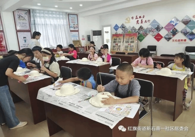 7月21日参加了红旗街道新石南–社区志愿服务(鸿润苑社区),负责美术教学等活动,在期间起到了组织策划和动员学生的作用,为了发散小朋友们的思维,用DIY的方式让小朋友们运用自己喜欢的颜色在图案上绘制成属于自己独特的“帽子”我感受到了社区人员的温暖与亲切。