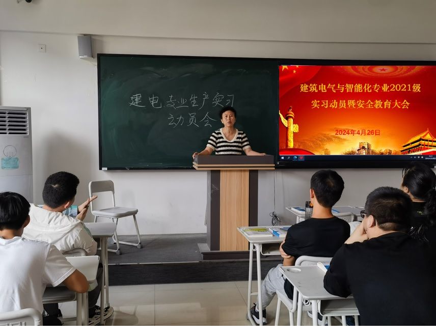 为进一步做好2021级建筑电气与智能化专业学生的生产实习工作,4月26日下午14:00建筑电气与智能化专业的生产实习暨安全教育大会在知行楼403教室召开。建筑电气与智能化系骨干教师及2021级39名学生参会。此次动员会旨在加强学生对生产实习工作的了解,加深对企业生产工艺流程的认识,提高自身对于安全生产的意识。