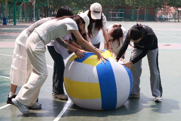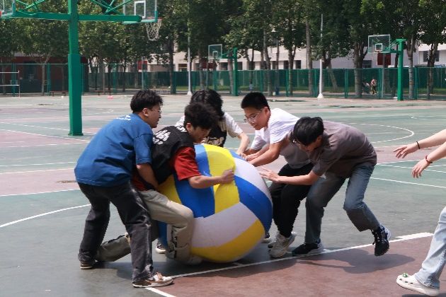 运动会上共有五组队伍参赛,运动员们分别在踩气球大战、进击吧,排球、瞎子背瘸子、激情飞盘和乒乓球五子棋5个单元项目上展开角逐。赛场上,各小组成员团结协作,不时赢得围观者的阵阵掌声与喝彩声。