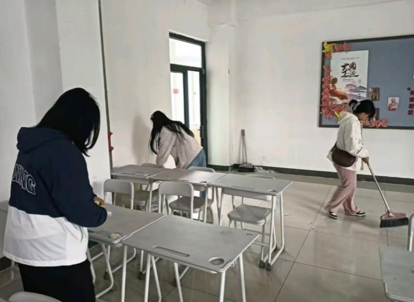 “共建美丽校园”活动主要针对校园教室卫生进行打扫整理。打扫教室的过程,是美德与团队精神的培养皿。各支部成员积极响应,同学们热情参与,对教室内的桌椅、地面、黑板及窗户进行了彻底清洁。此次活动不仅教会了我们勤劳、责任与尊重,更让我们在分工明确、相互协作的实践中,展现出良好的团队精神。