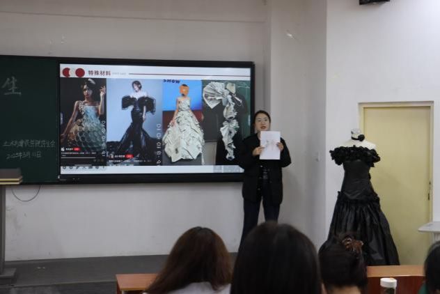 活动伊始,指导老师图文并茂的讲解PPT,深入浅出地阐述环保的重要性以及服装设计的一些思路。呼吁我们将身边常见的塑料袋,塑料瓶等循环利用,将它们裁剪拼接,就能变成时尚的服装。用创意让循环时尚重生。