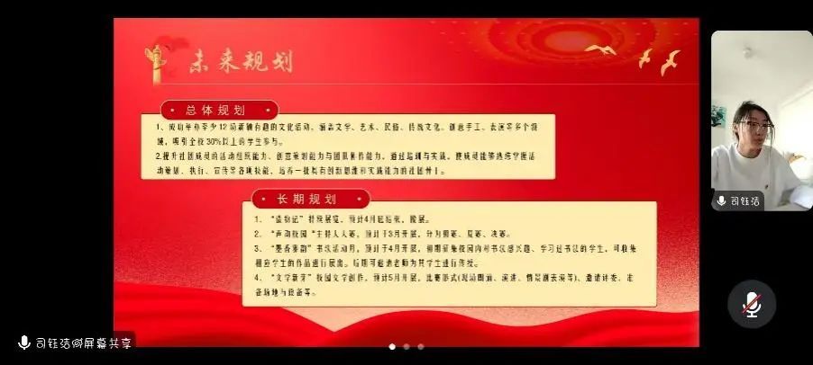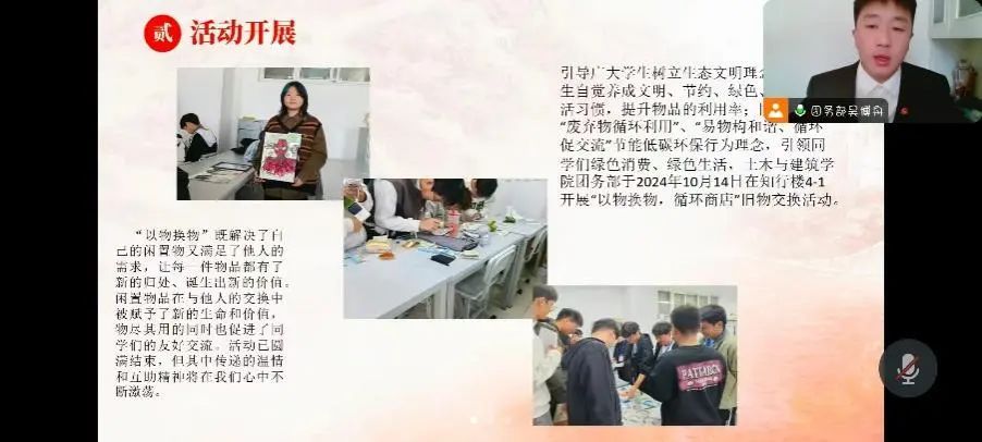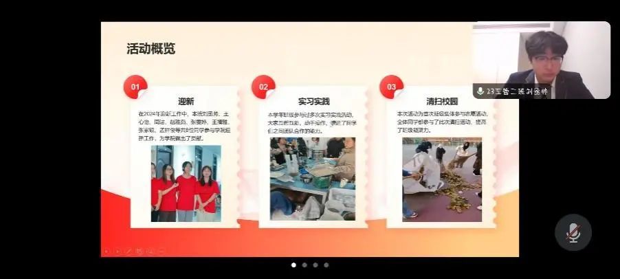 “对标定级”工作坚持定期集中开展,实行动态化管理。本次对标定级会议主要从团支部 “班子建设(10分)”“团员管理(25分)”“组织生活(25分)”“制度落实(20分)”“作用发挥(20分)” 五个维度进行评定。面向对象为2022级班级团支部、2023级班级团支部以及社团团支部。各团支部代表积极围绕这五个维度进行线上汇报。
