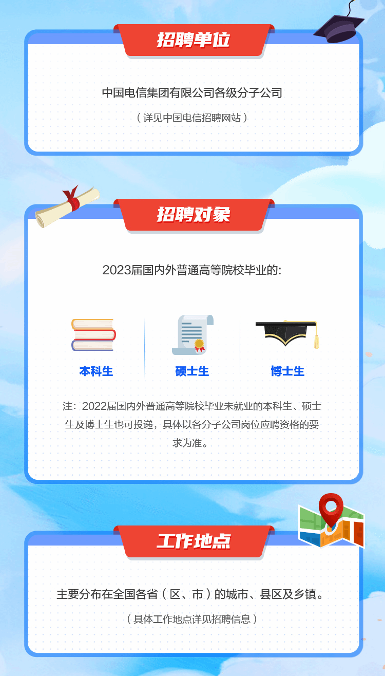 「招聘公告」中国电信2023春季校园招聘正式启动!