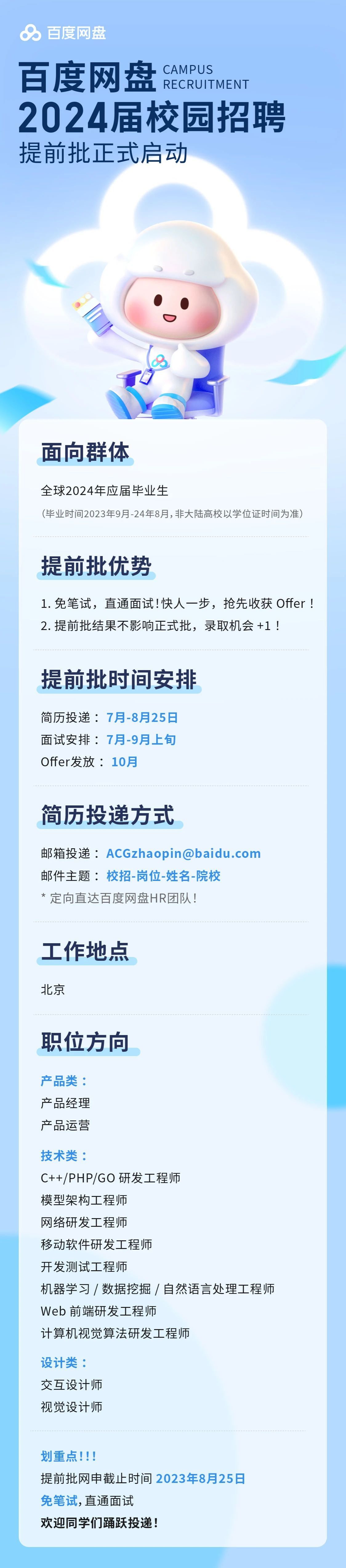 「招聘公告」百度网盘2024届校园招聘提前批开启!