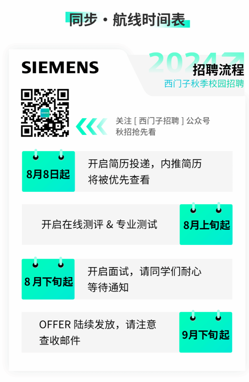 「招聘公告」西门子2024届秋季校园招聘开启!