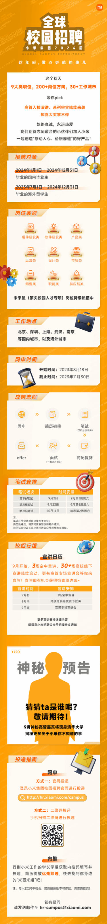 「招聘公告」 小米集团2024届全球校园招聘正式启动!文末有内推!