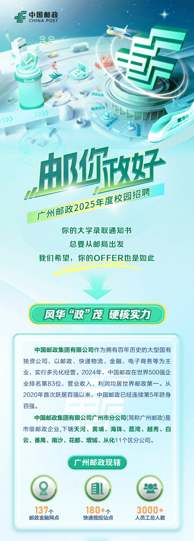「招聘公告」国企!中国邮政分公司2025年度校园招聘!24、25均可投递!