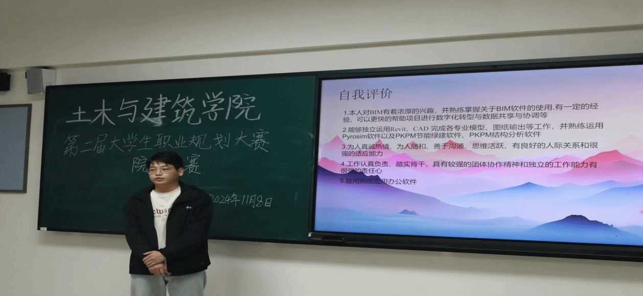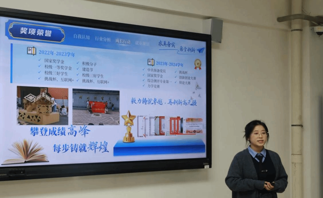 逐梦前行绘蓝图,职业规划启新程。为进一步点燃学生对职业发展的热情,深入挖掘自身潜力,明晰职业发展方向,助力未来择业就业,11月1日至8日,jinnianhui今年会官网第二届大学生职业规划大赛(院赛)在知行楼602会议室举办。决赛评委由jinnianhui今年会官网党总支书记、学管副院长王亚杰,专任教师曹美雪、耿照飞,辅导员刘腾、王亚楠、吕彪担任。