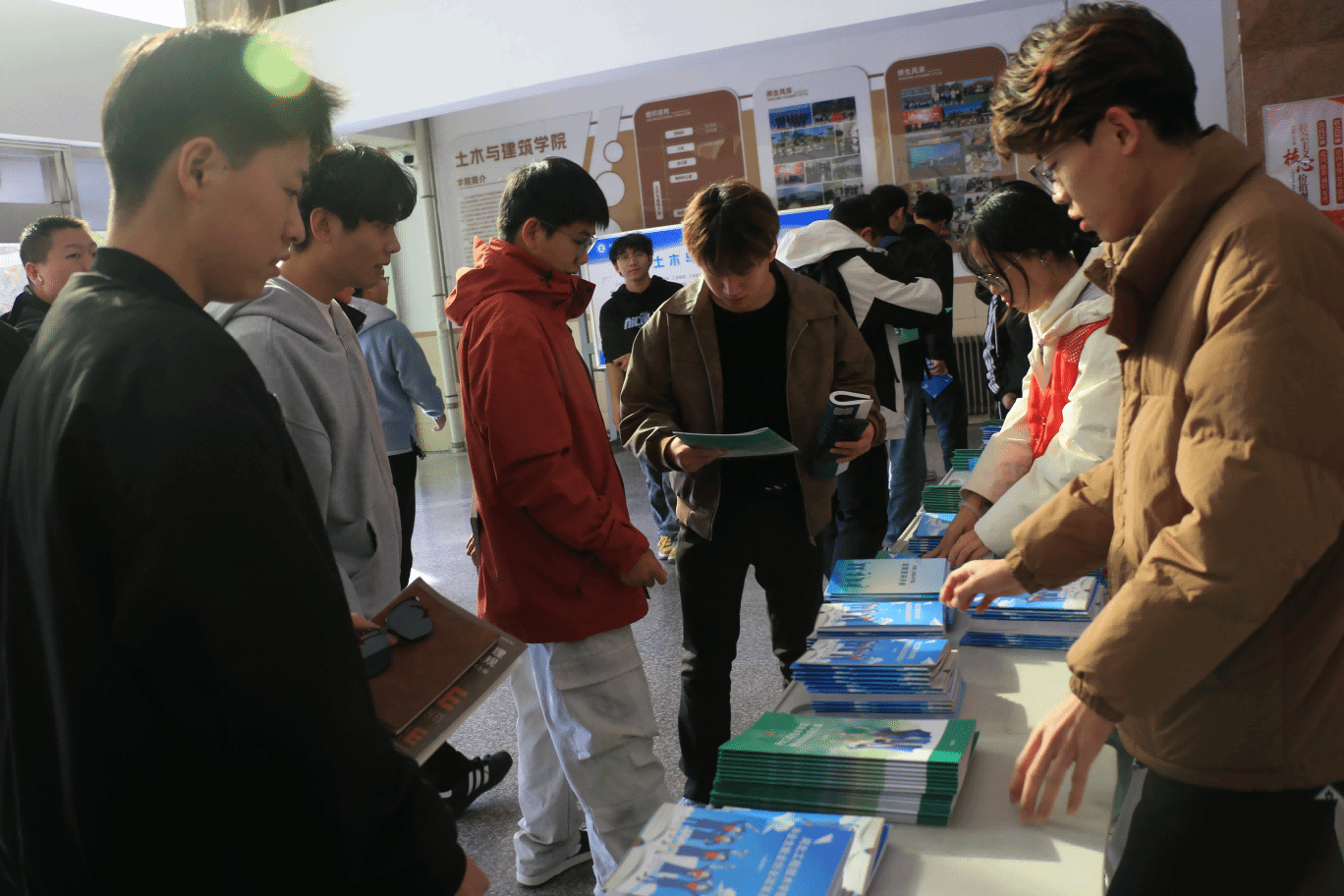 活动期间,学院在知行楼大厅设立了宣传站点,利用中午时段为学生提供就业创业宣传手册的讲解和发放服务。工作人员耐心细致地向过往学生介绍手册中的重点内容,涵盖最新的就业扶持政策、创业优惠措施及求职技巧等,并针对学生提出的疑问进行了一一解答,使学生们对就业创业政策有了更为直观和清晰的认识。