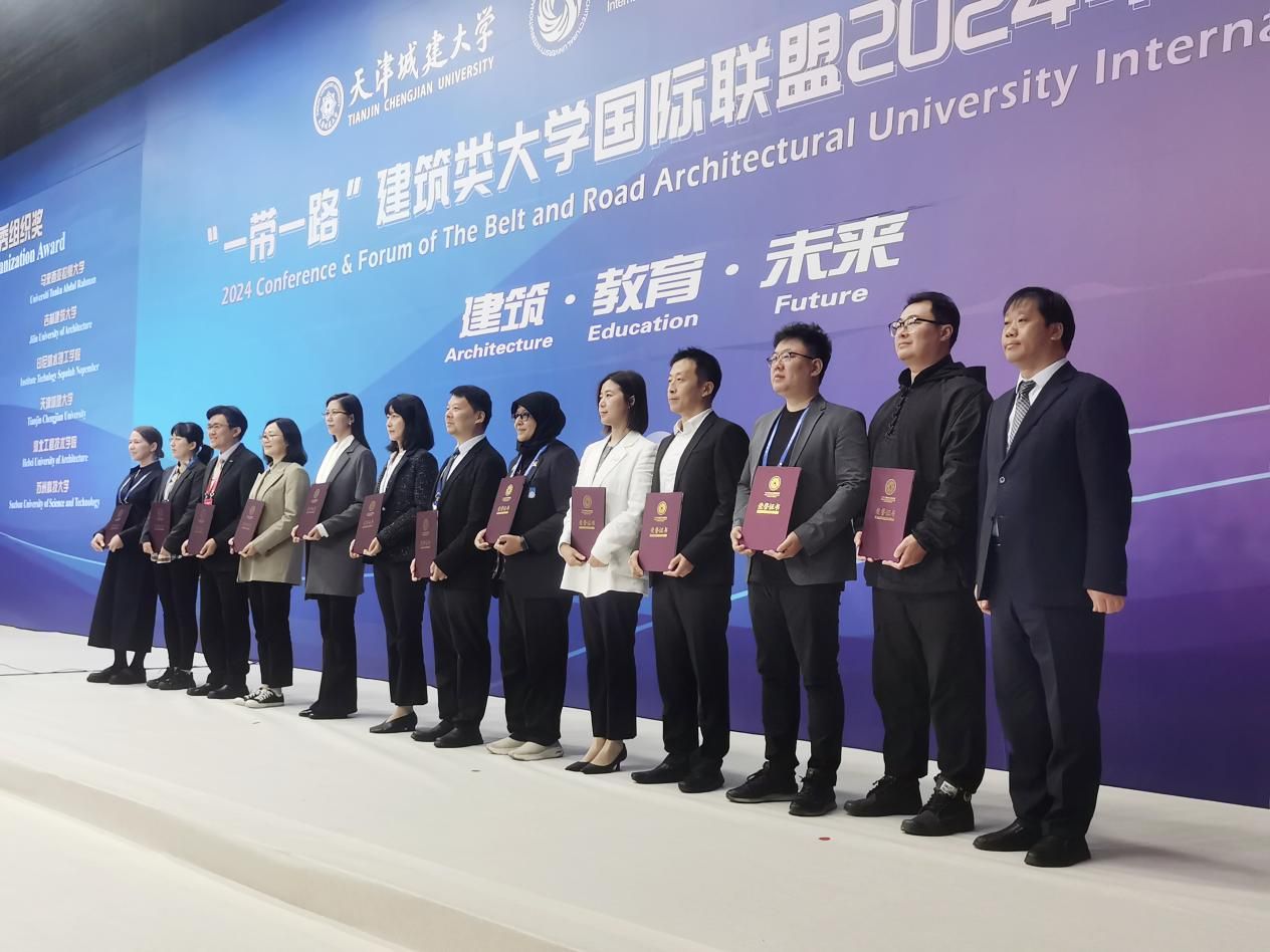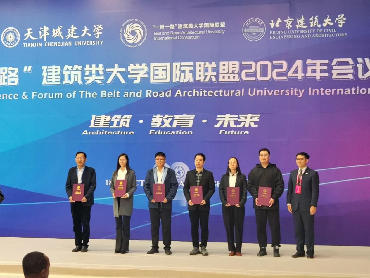 2024年10月18日-20日,“一带一路”建筑类大学国际联盟2024年会议暨论坛在天津城建大学召开。此次论坛由联盟主席单位北京建筑大学和天津城建大学联合举办,以“共‘筑’盛世之路·同绘繁华之卷”为主题。共吸引来自14国40余所高校和企业100余名联盟成员代表、专家学者和企业家代表参加,jinnianhui今年会官网建筑学系系主任齐成龙、骨干教师姜北荣、王洋洋一行三人参加了会议与颁奖仪式。
