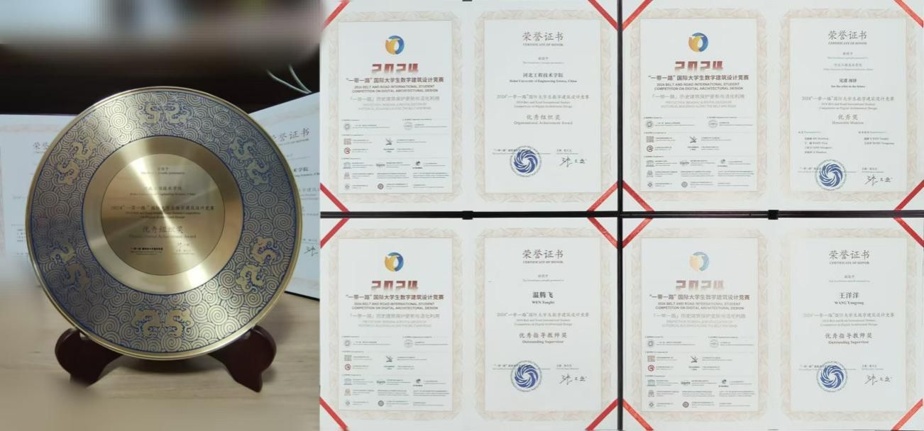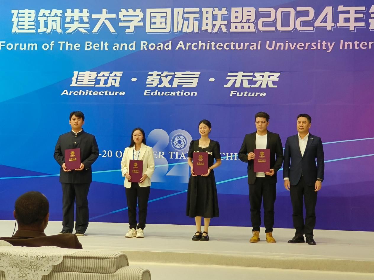 大会同时公布了“2024‘一带一路’国际大学生数字建筑设计竞赛”获奖名单,此次竞赛吸引了来自11个国家的79所高校、1700余名师生参与,提交参赛作品二百余件,今年会官网荣获该赛事优秀组织奖。建筑与土木学院推荐的参赛作品《见遗 现驿》获得优秀奖;王洋洋、温腾飞2名教师荣获优秀指导教师称号。